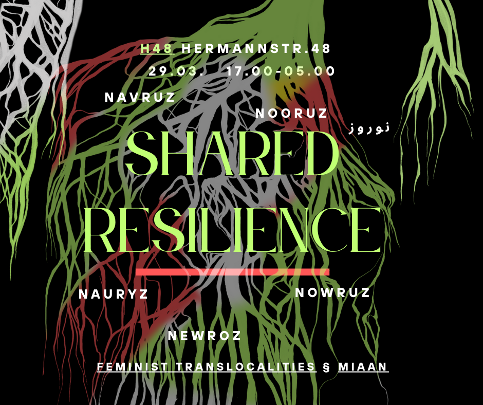 In these times of growing polarization and violence, we recognize the power of decolonial joy. As activists, artists, and communities, we come together to celebrate — to welcome spring, renew our spirits, and strengthen our collective resilience. The artists taking part in the celebration are Adiba, ayacantstop, Bakai, B-Manesh, Eleni Mik, Goosindra, Hanic, Hogir Göregen, kamunts, Kanykei Kyzy, Missteikk, Netam, Nomads, Nour Sokhon, Saeed Asadsangabi, Stas Šärifulla (HMOT), Tolganay Talgat, TATAR KYZ:LAR (allapopp and Dinara Rasuleva), Yara Mekawei, Yazdan Jamshidi, Zara, Ziliä Qansurà, 75021.